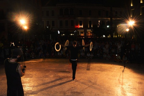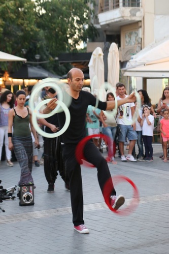 περφόρμερς, ζογκλέρ, κινηματογραφιστές, φωτογράφοι και πλήθος