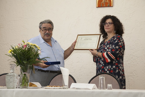 Τέλος μέσα σε συγκινησιακή ατμόσφαιρα της επέδωσε τον τίτλο του Επίτιμου Μέλους του Πολιτιστικού Συλλόγου Αγίας Αικατερίνης, καθώς επίσης μία αναμνηστική πλακέτα και αναμνηστικά παραδοσιακά δώρα.