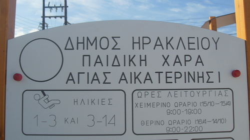Με το παρόν εκφράζουμε προς το Δημοτικό Συμβούλιο, τον Δήμαρχο Ηρακλείου κον Βασίλειο Λαμπρινό και τον αντιδήμαρχο τεχνικών έργων-πρασίνου και καθημερινότητας κον Γιάννη Αναστασάκη, την χαρά και ικανοποίηση του Πολιτιστικού Συλλόγου Αγίας Αικατερίνης και όλων των κατοίκων της ομώνυμης συνοικίας της Πόλης μας, για την ικανοποίηση ενός πολύχρονου αιτήματός μας και την τήρηση της υπόσχεσής τους, δηλ. να κατασκευάσουν, να ολοκληρώσουν και να παραδώσουν σε χρήση, δύο σύγχρονες και ασφαλείς παιδικές χαρές, και συγκεκριμένα στις οδούς Γ. Δαφέρμου και Σολωμού Σολωμού.