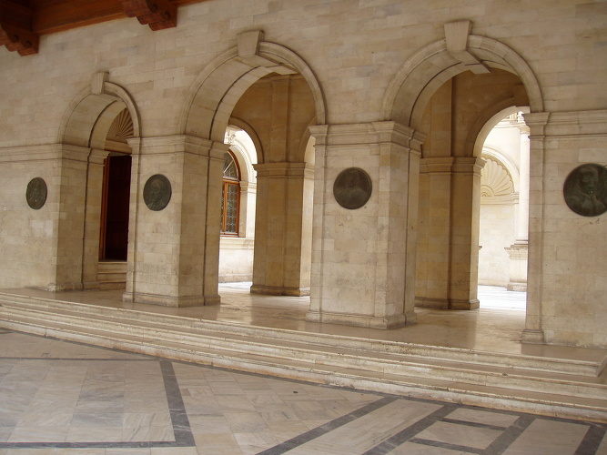 After some years, and following the end of the 2nd World War, the works for the restoration of Loggia and its connection, through an atrium, with the Armeria, started afresh. Today the first floor has been formed into a special hall for ceremonies and the weekly meetings of the Municipal Council and it has been accordingly furnished and decorated. The crowning of all these efforts was the awarding of the prize in 1987 from the international organization "Europa Nostra" for the most successful restoration of a historical building with a modern use in the Greek area.