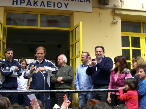 Ο Δήμαρχος Ηρακλείου κ.Γιάννης Κουράκης επισκέφθηκε μαζί με αντιπροσωπεία της Εθνικής Ελλάδος Ποδοσφαίρου (Μπασινάς, Σαμαράς, Κοτσιανικούλης και τον Μανατζερ Φύσα) το 6ο Δημοτικό Σχολείο Ηρακλείου όπου συνομίλησαν με τα παιδιά και έπαιξαν μαζί τους.