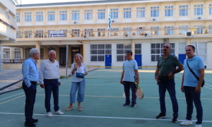 Τα σχολικά συγκροτήματα του 3ου ΓΕΛ, στη Λεωφόρο Δημοκρατίας και του 8ου ΓΕΛ στην περιοχή του Αγίου Ιωάννη Κνωσσού, δύο από τα 15 συγκροτήματα που συμμετέχουν στο καινοτόμο πρόγραμμα του Δήμου Ηρακλείου «Ανοιχτές Αυλές - Ανοιχτά Σχολεία», επισκέφθηκε ο Δήμαρχος Αλέξης Καλοκαιρινός μαζί με τον Αντιδήμαρχο Παιδείας Αντώνη Περισυνάκη, το απόγευμα της Τετάρτης 30/7.