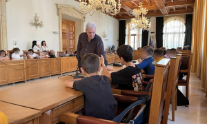 Ο Αλέξης Καλοκαιρινός υποδέχθηκε νωρίς το πρωί τα παιδιά τα οποία βρέθηκαν στη Λότζια στα πλαίσια εκπαιδευτικής εκδρομής συνοδευόμενα από τις εκπαιδευτικούς Μαρία Αγγουριδάκη, Μαρία Κυριακοπούλου και Ελευθερία Παπαδάκη.Η συνάντηση πραγματοποιήθηκε στην αίθουσα «Ελευθέριος Βενιζέλος» όπου διεξάγονται οι συνεδριάσεις του Δημοτικού Συμβουλίου και διήρκησε περισσότερο από μια ώρα καθώς οι μαθητές και οι μαθήτριες του σχολείου είχαν πολλά να ρωτήσουν τον Αλέξη Καλοκαιρινό ο οποίος με χαρά απάντησε σε όλες τις απορίες.