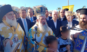 Ο Αλέξης Καλοκαιρινός παρακολούθησε στον Ιερό Καθεδρικό Ναό του Αγίου Τίτου την Πανηγυρική Αρχιερατική Θεία Λειτουργία και την Ακολουθία του Μεγάλου Αγιασμού που πραγματοποιήθηκε ιερουργούντος του Σεβασμιωτάτου Αρχιεπισκόπου Κρήτης Ευγενίου. Αμέσως μετά ο Δήμαρχος Ηρακλείου ακολούθησε την καθιερωμένη λιτανεία προς το λιμάνι, υπό τους ήχους της Φιλαρμονικής του Δήμου Ηρακλείου, όπου στη συνέχεια θα τελέστηκε ο Καθαγιασμός των υδάτων από τον Αρχιεπίσκοπο Κρήτης και η ρίψη του Σταυρού.