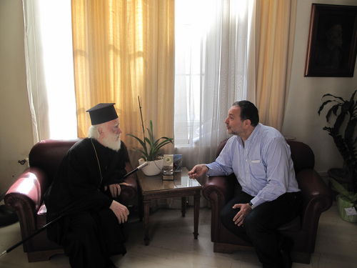 Ο Δήμαρχος Ηρακλείου κ.Γιάννης Κουράκης με τον Σεβασμιότατο Αρχιεπίσκοπο Κρήτης κ.κ.Ειρηναίο ο οποίος τον επισκέφθηκε για να τον συγχαρεί για τη νίκη στου στις εκλογές.