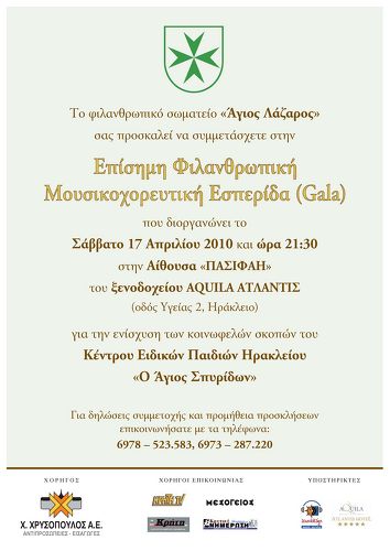 O Πρόεδρος, Υποστράτηγος ε.α. Δρ. Νικόλαος Κουρκουμέλης – Κοθρής, τα μέλη του Κεντρικού Διοικητικού Συμβουλίου και οι αντιπρόσωποι των τοπικών παραρτημάτων από διάφορα μέρη της χώρας, της Μεγάλης Ελληνικής Αποστολής, του Στρατιωτικού και Νοσοκομειακού Τάγματος του Αγίου Λαζάρου της Ιερουσαλήμ, θα συναντηθούν το πρωί του Σαββάτου 16 Απριλίου 2010, με το Δήμαρχο Ηρακλείου κ. Ιωάννη Κουράκη, στο Δημαρχιακό Μέγαρο της πόλης. Η επίσκεψη των μελών στο Δήμαρχο Ηρακλείου, θα γίνει με την ευκαιρία της ετήσιας συναντήσεώς τους, που φέτος θα πραγματοποιηθεί στο Ηράκλειο. Στην συνάντηση θα παραστεί ο ιδρυτής και επίτιμος Πρόεδρος της Μεγάλης Ελληνικής Αποστολής του Τάγματος και Πρόεδρος του Φιλανθρωπικού Σωματείου «Άγιος Λάζαρος», Ιατρός Δρ. Pierre Vittouri. O κ. Vittouri είναι μόνιμος κάτοικος Γαλλίας και απευθείας απόγονος της ιστορικής οικογένειας Vittouri, που πολέμησε στην πολιορκία του Χάνδακος, το όνομα της οποίας φέρει και ο ομώνυμος Προμαχώνας, των ενετικών τειχών της πόλης μας.