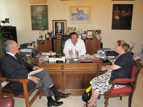 Συνεργασία για θέματα των Παιδικών Σταθμών είχε σήμερα ο Δήμαρχος Ηρακλείου κ. Γιάννης Κουράκης με τον Πρόεδρο του Δ.Σ. κ. Δημήτρη Καρατζάνη και την Πρόεδρο του ΔΟΠΑΕΗ κ. Ελένη Κόκκορη.