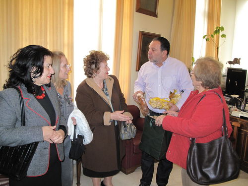 Ο Δήμαρχος κ.Κουράκης με αντιπροσωπεία του Σοροπτιμιστικού Συλλόγου Ηρακλείου που τον επισκέφθηκε σήμερα στη Λότζια για ανταλλαγή δώρων και ευχών για καλές γιορτές.