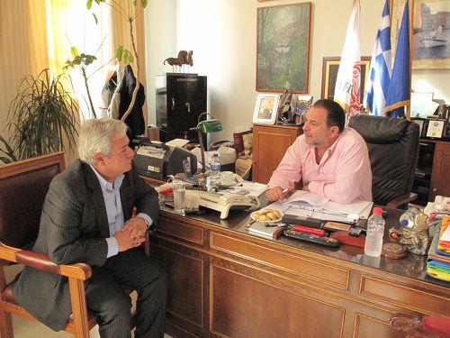 Από την επίσκεψη -συνεργασία που είχαν σήμερα στη Λότζια ο Δήμαρχος Ηρακλείου κ.Γιάννης Κουράκης με το νέο Δήμαρχο Μαλεβυζίου κ.Κώστα Μαμουλάκη.