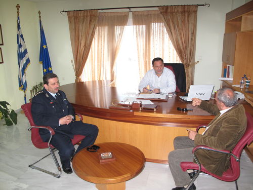 Συνάντηση πραγματοποιήθηκε σήμερα Τετάρτη 13/04/2011 μεταξύ του Δημάρχου Ηρακλείου  κ. Γιάννη Κουράκη, του Αστυνομικού Δ/ντή της ΕΛ.ΑΣ Ταξιάρχου κ. Χαλκιαδάκη Μανόλη και του Πολιτικού Προϊστάμενου της Δημοτικής Αστυνομίας κ. Δαγκωνάκη Στρατή στα πλαίσια συνεργασίας της Δημοτικής Αστυνομίας και της ΕΛ.ΑΣ.