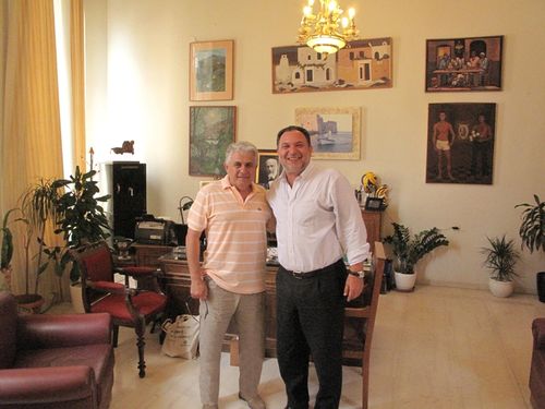 Εθιμοτυπική επίσκεψη στον Δήμαρχο Ηρακλείου κ. Γιάννη Κουράκη πραγματοποίησε σήμερα ο Δήμαρχος Ορχομενού κ. Ξηρογιάννης Κωνσταντίνος που βρέθηκε ως επισκέπτης στο Ηράκλειο.