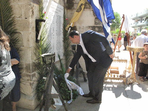 ΦΩΤΟΓΡΑΦΙΕΣ ΑΠΟ ΤΗΝ  ΚΑΤΑΘΕΣΗ ΣΤΕΦΑΝΟΥ ΤΟΥ ΔΗΜΑΡΧΟΥ ΗΡΑΚΛΕΙΟΥ Κ. ΓΙΑΝΝΗ ΚΟΥΡΑΚΗ ΣΤΟ ΜΝΗΜΟΣΥΝΟ ΤΩΝ 62 ΜΑΡΤΥΡΩΝ ΠΟΥ ΤΕΛΕΣΤΗΚΕ ΣΤΟ ΕΚΚΛΗΣΑΚΙ  ΤΩΝ ΑΓΙΩΝ ΠΑΝΤΩΝ ΣΤΟ ΓΑΖΙ