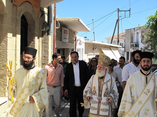 Μετά την λειτουργία στο εσωτερικό του Ναού, ακολούθησε η λιτανεία των λειψάνων.