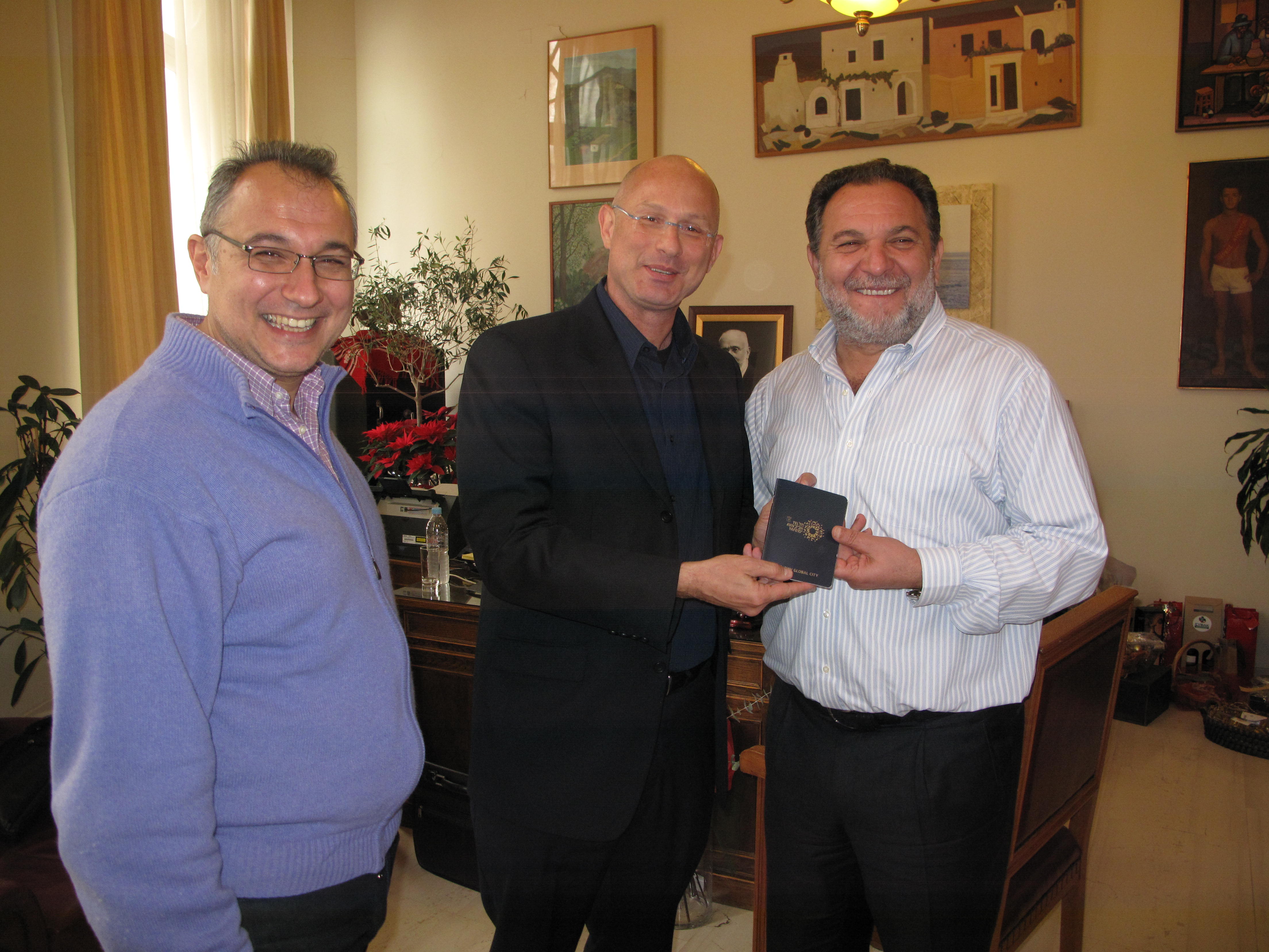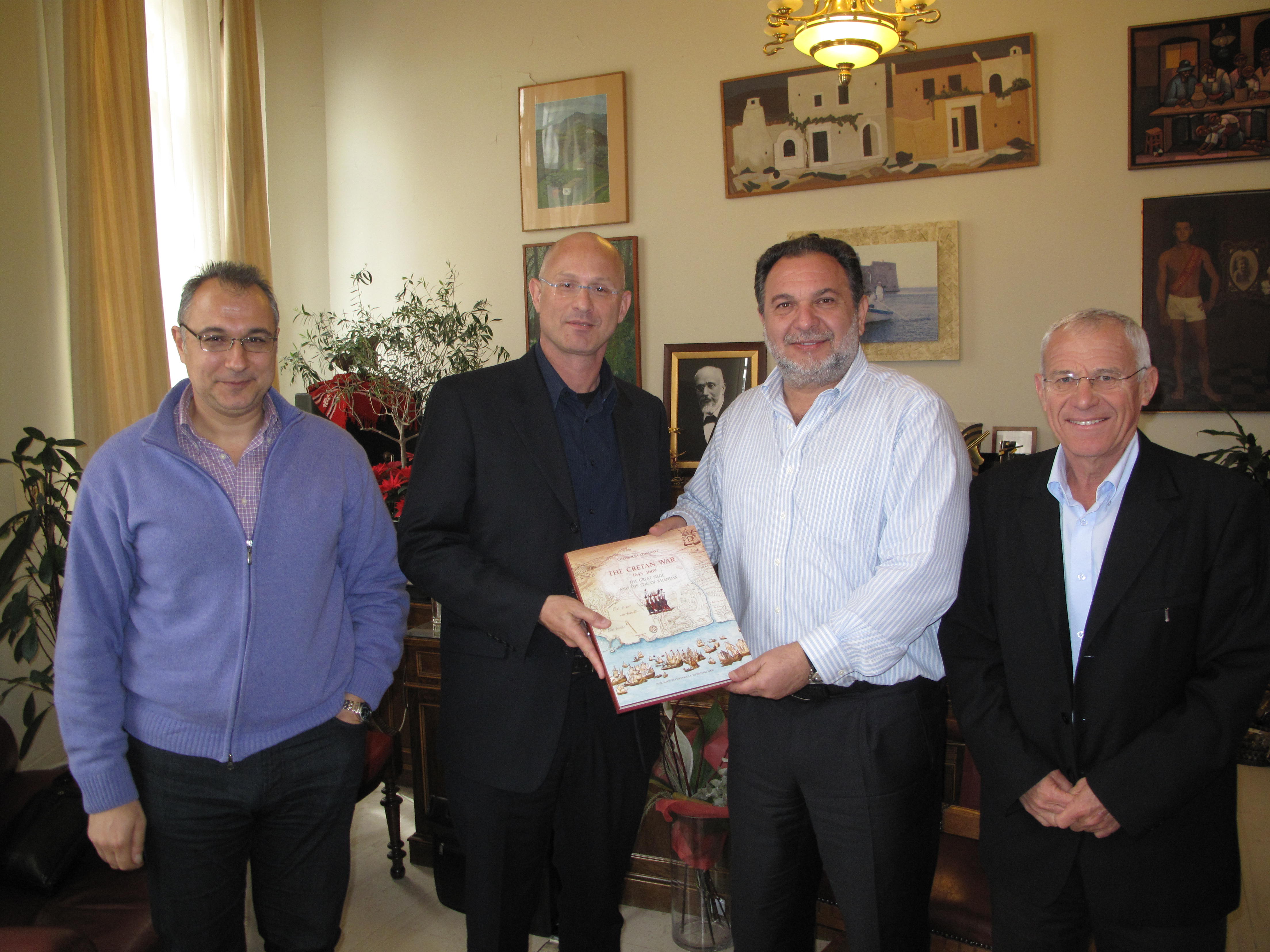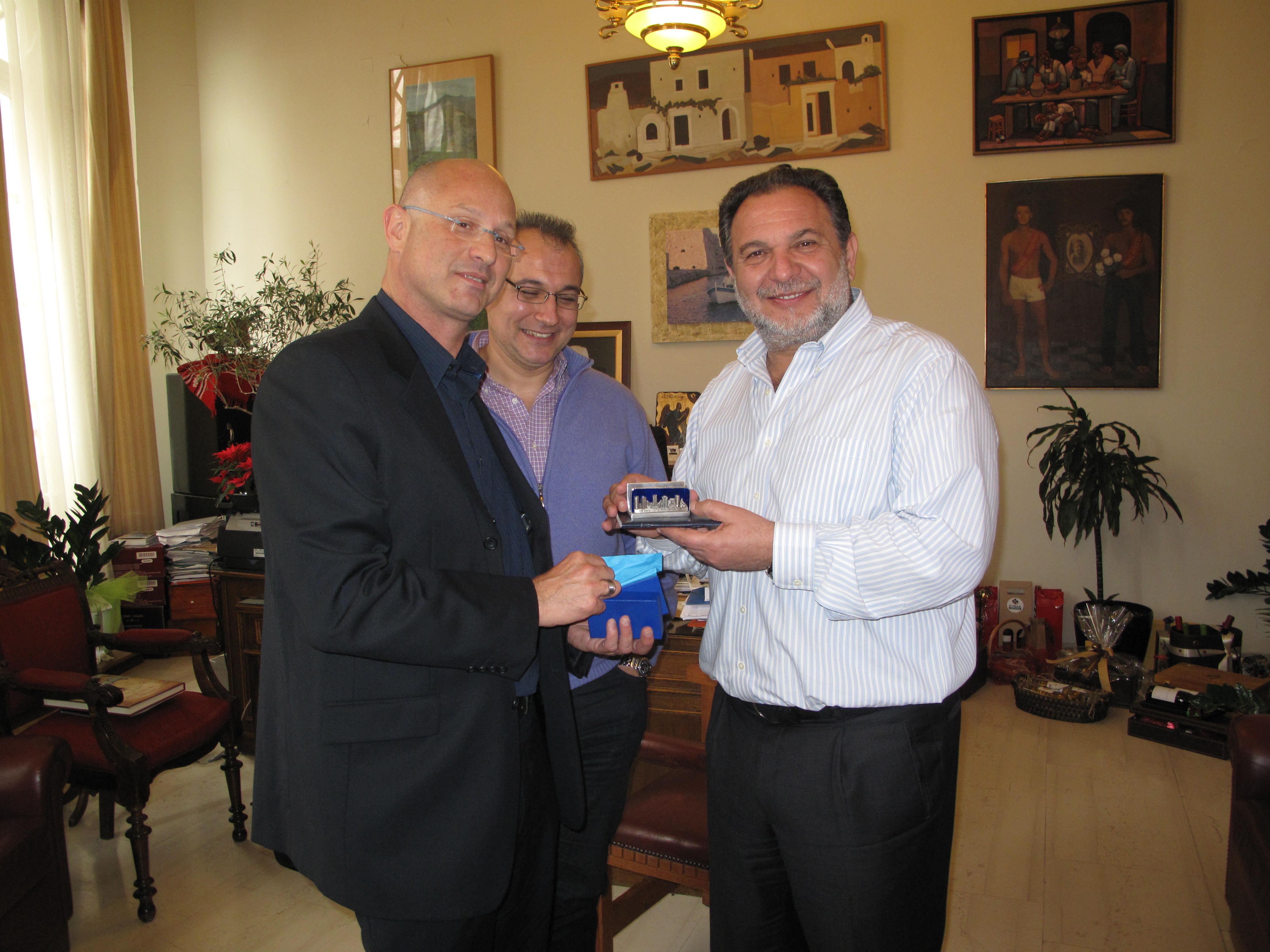 Ο Δήμαρχος Ηρακλείου αντάλλαξε αναμνηστικά δώρα με τον κ. Ντόρον Σαπίρ και ο τελευταίος κάλεσε τον κ. Κουράκη να επισκεφτεί σύντομα την πόλη του Τελ Αβίβ.