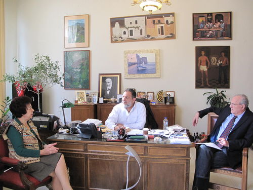 Στην συνάντηση στην οποία παρευρέθηκε και ο Πρόεδρος του Δημοτικού Συμβουλίου Δημήτρης Καρατζάνης συζητήθηκε το θέμα της ημερομηνίας των αποκαλυπτηρίων του αγάλματος της ¨ΜΗΤΕΡΑΣ¨, που έχει τοποθετηθεί ήδη στην Πλατεία Φανερωμένης, έναντι του Π.Σ.Κ.Η..