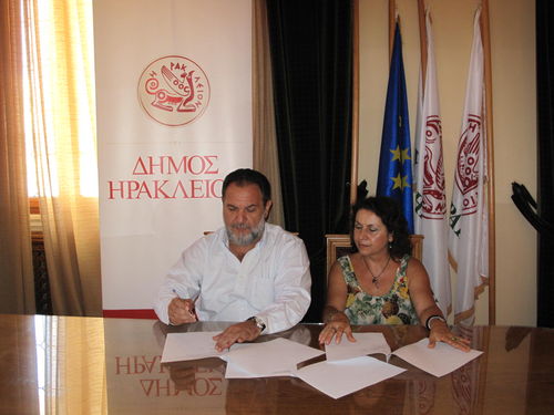 Σήμερα Υπεγράφη από το Δήμαρχο Ηρακλείου κ. Γιάννη Κουράκη παρουσία και της Προέδρου της 1ης Δημοτικής Κοινότητας κ. Ελένης Κλειδά η Διακήρυξη για τον Ανοικτό Διαγωνισμό που θα δημοσιευθεί στον Τοπικό και Αθηναϊκό Τύπου του έργου :