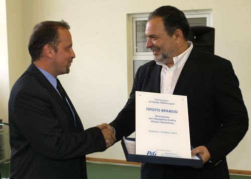 Βραβεύτηκε σήμερα, Τετάρτη 29 Μαΐου 2013, το Παγκρήτιο Στάδιο του Δήμου Ηρακλείου, ως ένα από τα καλύτερα Αθλητικά Κέντρα στην χώρα μας μετά από ηλεκτρονικό διαγωνισμό που υλοποίησε η εταιρεία P & G-Μαρινόπουλος, το έτος 2012 στα πλαίσια του προγράμματος «Στηρίζω Αθλητισμό».