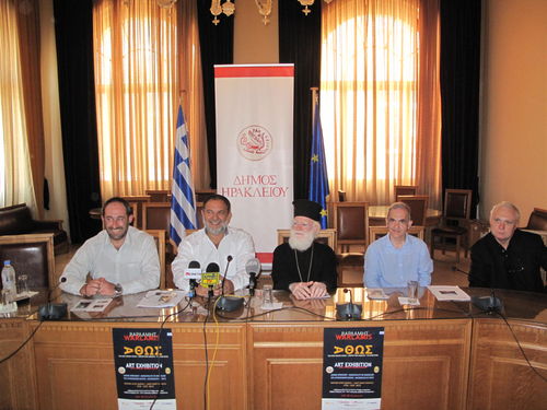 Σε Κοινή Συνέντευξη Τύπου στο Δημαρχείο Ηρακλείου ο Σεβασμιότατος Αρχιεπίσκοπος Κρήτης κ.κ Ειρηναίος, ο Δήμαρχος Ηρακλείου κ. Γιάννης Κουράκης, ο Αντιδήμαρχος Παιδείας & Πολιτισμού κ. Γιαλιτάκης Νίκος και ο κ. Τροχόπουλος Παύλος, κάλεσαν τους Ηρακλειώτες, τους Κρητικούς και όσους θα βρεθούν στο νησί να επισκεφτούν την έκθεση ¨Το Άγιον Όρος¨ του διεθνούς φήμης καθηγητού κ. Ευθύμη Βαρλάμη.