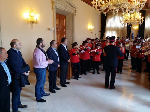 Τα κάλαντα των Χριστουγέννων και άλλες Χριστουγενιάτικες μελωδίες σήμερα από τη Φιλαρμονική του Δήμου Ηρακλείου στη Λότζια στο Δήμαρχο κ.Γιάννη Κουράκη και τη Δημοτική Αρχή που την υποδέχτηκαν στην αίθουσα Ελευθέριος Βενιζέλος. Ο Δήμαρχος ευχήθηκε καλές γιορτές σε όλους με υγεία και ευτυχία