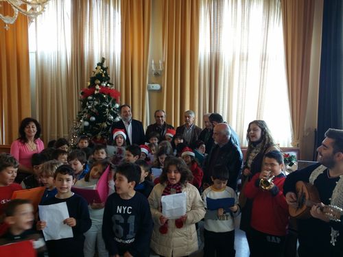 Ο Δήμαρχος Ηρακλείου κ. Γιάννης Κουράκης και οι Αντιδήμαρχοι κ. Γιαλιτάκης , Σισσαμάκης και Δημόπουλος υποδέχτηκαν τους μαθητές και τους δασκάλους του 6ου και 44 Δημοτικού Σχολείου που τους έψαλαν τα παραδοσιακά Κρητικά Κάλαντα και αντάλλαξαν ευχές για τα Χριστούγεννα.