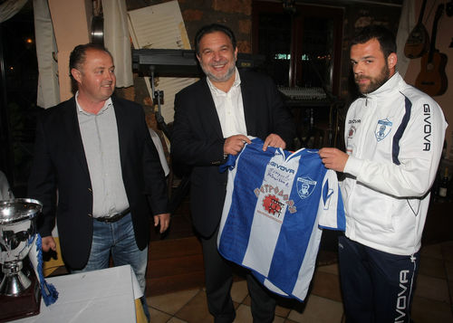 Από την πλευρά τους οι ποδοσφαιριστές ευχαρίστησαν τον Δήμαρχο και του προσέφεραν μια φανέλα της ιστορικής ομάδας του ΗΡΟΔΟΤΟΥ με τις υπογραφές τους.