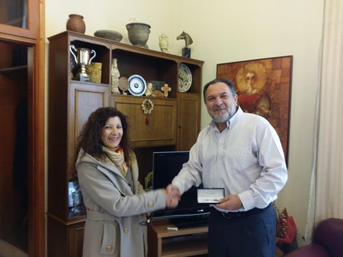 Τον Δήμαρχο Ηρακλείου Γιάννη Κουράκη, συνάντησε σήμερα το στέλεχος των Ενετικών Τειχών του Δήμου Ηρακλείου Γιάννα Κύρκα για να τον αποχαιρετήσει αφού αποχωρεί από την Υπηρεσία, λόγω συνταξιοδότησης.