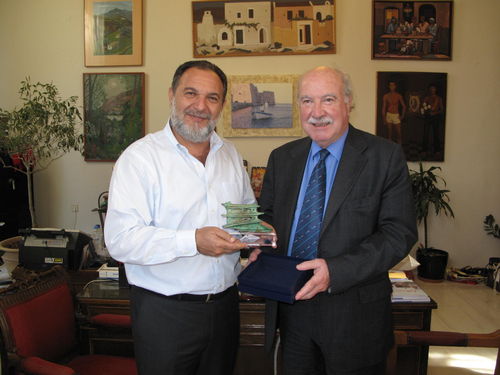 Τέλος έγινε ανταλλαγή αναμνηστικών δώρων με τον Δήμαρχο Ηρακλείου να προσφέρει εκδόσεις της Β.Δ.Β. (Κρητικό Γλωσσάρι και Κρητικός Πόλεμος), ενώ ο κ. Ανωμερίτης πρόσφερε αντίγραφο του Εμβόλου Τριήρους (βασικό όπλο θαλάσσιου πολέμου.) και βιβλία.