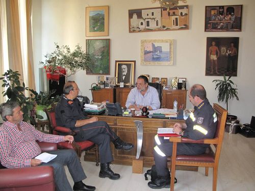 Κατά τη διάρκεια της συνεργασίας Διοικητής της Πυροσβεστικής έθεσε στο Δήμαρχο τις διάφορες ελλείψεις σε υλικοτεχνική υποδομή που αντιμετωπίζει η υπηρεσία του με τον κ. Κουράκη να ανταποκρίνεται δηλώνοντας ότι ο Δήμος θα εξετάσει την προμήθεια ενός Πυροσβεστικού οχήματος 4χ4 με δεξαμενή και αντλία πυρόσβεσης για τις ανάγκες πυρασφάλειας της Παλιάς Πόλης το οποίο θα δοθεί προς χρήση στη Πυροσβεστική .