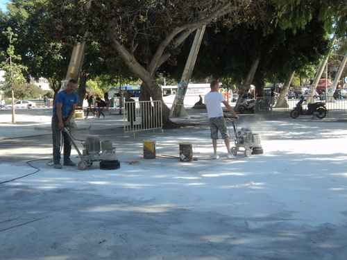 εντατικούς ρυθμούς οι εργασίες για την αντιμετώπιση της ολισθηρότητας στην Πλατεία
