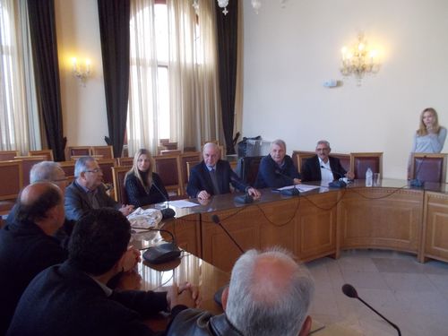 Στη Λότζια την πολυπληθή αντιπροσωπία από την Κύπρο υποδέχτηκε ο Δήμαρχος Ηρακλείου κ. Βασίλης Λαμπρινός και η Αντιδήμαρχος Κοινωνικής Πολιτικής κ. Αθηνά Σπανάκη –Κοχιαδάκη παρουσία του Δ/ντή των υπηρεσιών Κοινωνικής Πολιτικής κ. Φανούρη Οικονομάκη.