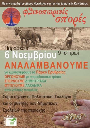 Η δράση είναι στα πλαίσια ανάδειξης και αξιοποίησης του υπό κατασκευή οικολογικού πάρκου της οδού Ερυθραίας (συνολικής έκτασης 55 στρεμμάτων) από την ομάδα «ΑΝΑΛΑΜΒΑΝΩ» που σε συνεργασία με το Δήμο Ηρακλείου ξεκίνησε το καλοκαίρι τον καθαρισμό του από σκουπίδια και ξερά χόρτα .