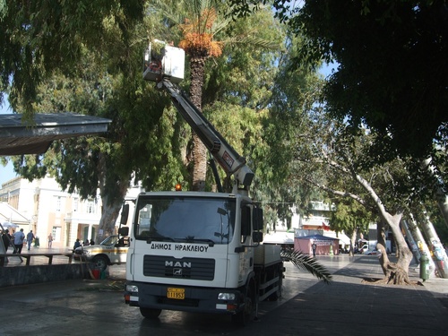 Σε προγραμματισμένη δράση αντιμετώπισης και καταπολέμησης του σκαθαριού των φοινικοειδών προχώρησε σήμερα, Τρίτη 15 Σεπτεμβρίου, το Τμήμα Μελετών και Συντήρησης Πρασίνου του Δήμου Ηρακλείου. Η προγραμματισμένη επιχείρηση της Υπηρεσίας πραγματοποιήθηκε με τη συμμετοχή γεωπόνων, εξειδικευμένου προσωπικού, αλλά και τη χρήση φυτοπροστατευτικών προϊόντων για την καταπολέμηση του σκαθαριού των φοινικοειδών. Η προσέγγιση των φοινικοειδών έγινε με τη χρήση γερανοφόρου οχήματος και παρέμβαση σημειώθηκε στους φοίνικες που υπάρχουν στην Πλατεία Ελευθερίας, στο Λόφο Τζάνε στο Ατλαντίς καθώς και σε άλλες περιοχές του Δήμου Ηρακλείου. Συνολικά, τα εξειδικευμένα συνεργεία του Τμήματος Μελετών και Συντήρησης Πρασίνου διαπίστωσαν προσβολή σε 7 φοίνικες, προσβολή που μέχρι αύριο 16/9/2015 θα έχει αντιμετωπιστεί με την κατάλληλη φυτοπροστασία. Επίσης στους υπόλοιπους 380 του είδους Phoenix Canariencis (που προσβάλλεται από το σκαθάρι) θα εφαρμοστεί φυτοπροστασία μέχρι το τέλος του μηνός Σεπτεμβρίου για λόγους πρόληψης και προστασίας τους.
