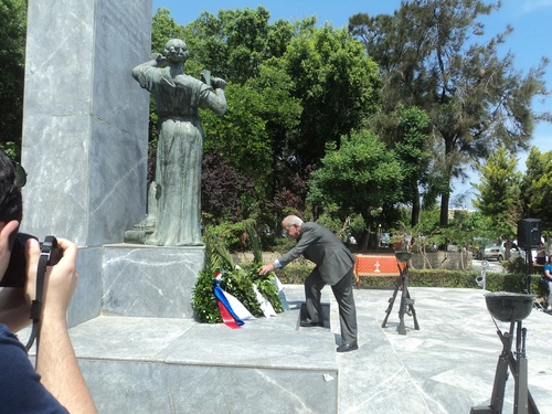 Στεφάνια κατέθεσαν ο Βουλευτής του ΚΚΕ κ. Μανόλης Συντυχάκης, ο Αντιπεριφερειάρχης Ηρακλείου κ. Ευριπίδης Κουκιαδάκης, ο Δήμαρχος Ηρακλείου κ. Βασίλης Λαμπρινός, οι εκπρόσωποι των Στρατιωτικών, Αστυνομικών αρχών, και εκπρόσωποι κομμάτων, φορέων, αποστράτων και αντιστασιακών οργανώσεων.