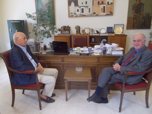 Θέματα που αφορούν την πόλη του Ηρακλείου, τις προοπτικές που ανοίγονται σε διάφορους τομείς και ενισχύουν την ανάπτυξη και την απασχόληση, ζητήματα της Τοπικής Αυτοδιοίκησης και της οικονομίας γενικότερα, συζήτησαν ο Δήμαρχος Ηρακλείου κ. Βασίλης Λαμπρινός με τον πρώην Δήμαρχο κ. Κώστα Κληρονόμο.