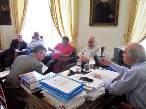 Μετά και τη χθεσινή απόφαση του Δημοτικού Συμβουλίου Ηρακλείου, συναντήθηκαν σήμερα στις 11 το πρωί στη Λότζια ο Δήμαρχος Ηρακλείου κ. Βασίλης Λαμπρινός, ο αρμόδιος Αντιδήμαρχος Χωροταξικού Σχεδιασμού και Πολεοδομίας κ. Γιάννης Αναστασάκης, οι επικεφαλής των δημοτικών παρατάξεων Βαγγέλης Σισαμάκης, Ηλίας Λυγερός, Μιχάλης Κασσαπάκης, Μόνα Αμανατίδου καθώς και ο εκπρόσωπος των οικιστών κ. Μιχάλης Βλαχάκης με μέλη του προεδρείου του σωματείου τους.