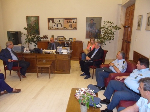 Με το Δήμαρχο Ηρακλείου κ. Βασίλη Λαμπρινό συναντήθηκε το απόγευμα της Παρασκευής, στη Λότζια, ο Γενικός Γραμματέας Δημοσίας Τάξης του Υπουργείου Προστασίας του Πολίτη κ. Δημήτρης Αναγνωστάκης. Ο κ. Αναγνωστάκης συνοδευόταν από  τον Επιτελάρχη της Ελληνικής Αστυνομίας, Αντιστράτηγο Εμμανουήλ Κατριαδάκη, το Γενικό Επιθεωρητή Αστυνομίας Νοτίου Ελλάδος, Αντιστράτηγο Κωνσταντίνο Μιχαιρίνα, το Γενικό Περιφερειακό Αστυνομικό Διευθυντή Κρήτης, Υποστράτηγο Μιχάλη Καραμαλάκη και τον Αστυνομικό Διευθυντή Ηρακλείου, Ταξίαρχο Νίκο Χριστοφάκη.