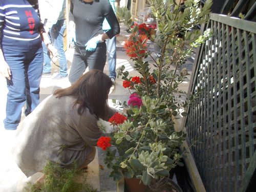 Η πολυμελής ομάδα φύτεψε στην καρδιά της πόλης όμορφα λουλούδια στις ζαρντινιέρες στην αυλή του Πολύκεντρου αλλά και απέναντι από τη Βικελαία Δημοτική Βιβλιοθήκη.