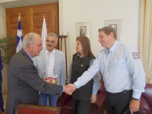 Αντιπροσωπεία του Συλλόγου εργαζομένων με επικεφαλής τον Πρόεδρό του κ.Γιώργο Στρατήγη, ο Εντεταλμένος Σύμβουλος αρμόδιος για την Δημοτική Αστυνομία κ.Μαρίνος Παττακός, η Δ/ντρια της υπηρεσίας κ. Βούλα Πλατάκη και ο Υποδ/ντής κ. Γιώργος Τρούκης προσέφεραν στο Δήμαρχο ένα Σταυρό και πασχαλινά αυγά.