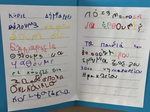 Μάλιστα οι μικροί μαθητές των νηπιαγωγείου που μετείχαν σήμερα στην εκδήλωση έστειλαν και μία ζωγραφιά στον αρμόδιο Αντιδήμαρχο κ. Πέτρο Ινιωτάκη για τα ζώα που χρειάζονται την φροντίδα μας ενώ ζήτησαν να συναντηθούν και μαζί του για να μάθουν περισσότερα όσον αφορά και τις δράσεις του Δήμου και του Κυνοκομείου για τη φροντίδα των αδέσποτων.