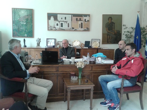 Εθιμοτυπική επίσκεψη στο Δήμαρχο Ηρακλείου κ.Βασίλη Λαμπρινό πραγματοποίησαν σήμερα στο γραφείο του στη Λότζια τρεις πρωταθλητές του κλασσικού Αθλητισμού που βρίσκονται στο Ηράκλειο ενόψει του αυριανού μεγάλου αθλητικού γεγονότος που φιλοξενείται στην πόλη μας το Love Run Heraklion 2016 αγώνας (5 χλμ.).