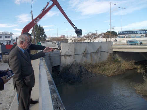 Ο Δήμαρχος συνοδευόμενος από την Αντιδήμαρχο Τεχνικών έργων κ. Χάρη Μαμουλάκη επισκέφθηκε την περιοχή για να δει από κοντά την εξέλιξη των εργασιών, εκφράζοντας με τον τρόπο αυτό το ιδιαίτερο ενδιαφέρον του και τη σημασία που προσδίδει στην εξέλιξη του αντιπλημμυρικού έργου, το οποίο θα βοηθήσει στην απρόσκοπτη ροή των υδάτων του ποταμού προς τη θάλασσα.