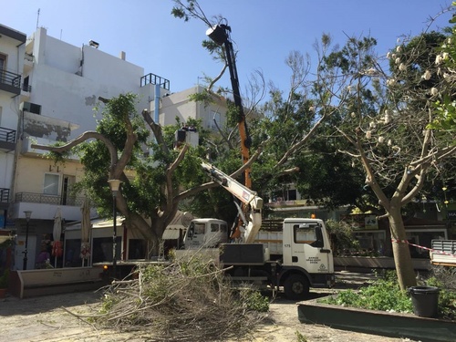Κλαδεύουν τα μεγάλα δέντρα της Πλατείας Δασκαλογιάννη