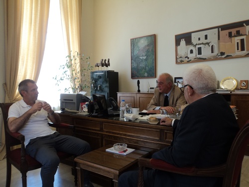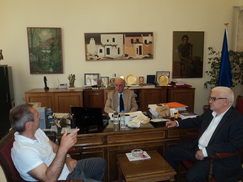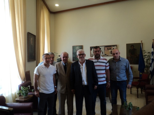 Τον πρόεδρο της διοικούσας επιτροπής του ΟΦΗ κ. Αντίπα Σηφάκη και τον προπονητή της ομάδας κ. Νίκο Νιόπλια υποδέχτηκε σήμερα, Τρίτη 24/5 στο γραφείο του στη Λότζια ο Δήμαρχος Ηρακλείου κ. Βασίλης Λαμπρινός. Η συνάντηση έγινε μέσα σε χαλαρό κλίμα και ο κ. Λαμπρινός ευχαρίστησε τους δυο άνδρες για τη χαρά που έδωσαν στους Ηρακλειώτες οδηγώντας τον ΟΦΗ στην Football League. Παράλληλα τους υποσχέθηκε ότι τόσο ο Δήμος όσο και ο ίδιος προσωπικά θα βρίσκεται στο πλευρό τους όποτε τον χρειαστούν: «Ήταν μεγάλη επιτυχία αυτή η άνοδος διότι επετεύχθη μέσα από σοβαρές αντιξοότητες. Δεν φοβηθήκατε να αναλάβατε την ομάδα σε εποχές οικονομικής κρίσης και στο τέλος, χάρη στην σκληρή δουλειά και την καλή συνεργασία όλων σας, μας κάνατε χαρούμενους. Ελπίζω και του χρόνου να είμαστε εδώ να πανηγυρίζουμε την επιστροφή στην Α΄ Εθνική» τόνισε ο Δήμαρχος Ηρακλείου.