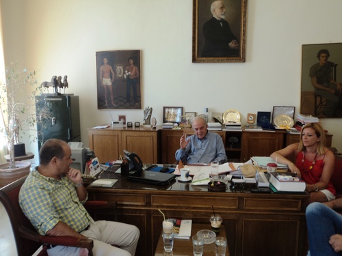 Εκπροσώπους των παραγωγικών φορέων της πόλης υποδέχτηκε το πρωί της Πέμπτης 18ης Αυγούστου στο γραφείο του στην Λότζια ο Δήμαρχος Ηρακλείου κ. Βασίλης Λαμπρινός. Στόχος της συνάντησης ήταν να τους ενημερώσει για τις τελευταίες εξελίξεις γύρω από το προσφυγικό θέμα και να ακούσει τις απόψεις και τις προτάσεις τους. Στη σύσκεψη, εκτός του Δημάρχου Ηρακλείου, συμμετείχαν η Αντιδήμαρχος Κοινωνικής Πολιτικής κ. Μαρία Καναβάκη καθώς και οι κ.κ.: Στέλιος Βοργιάς, πρόεδρος του Εργατικού Κέντρου Ηρακλείου, Μανώλης Κουμαντάκης, πρόεδρος του Εμπορικού Συλλόγου Ηρακλείου, Γιάννης Χαρωνίτης, πρόεδρος του Τεχνικού Επιμελητηρίου, Νίκος Χαλκιαδάκης, πρώην πρόεδρος της Ένωσης Ξενοδόχων Ηρακλείου, Δημήτρης Διβόλης, γ.γ. του Συνδέσμου Τουριστικών Πρακτόρων Κρήτης, Βαγγέλης Καρκανάκης, εκπρόσωπος του Εμπορικού Επιμελητηρίου και Νίκος Λιβαδειωτάκης, εκπρόσωπος της Ομοσπονδίας Επαγγελματιών Βιοτεχνών και Εμπόρων Νομού Ηρακλείου .