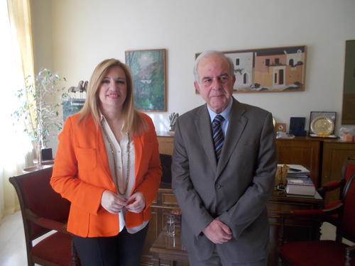 Εθιμοτυπική επίσκεψη στο Δήμαρχο Ηρακλείου κ. Βασίλη Λαμπρινό πραγματοποίησε το πρωί η επικεφαλής της Δημοκρατικής Συμπαράταξης και Πρόεδρος του ΠΑΣΟΚ κ. Φώφη Γεννηματά.