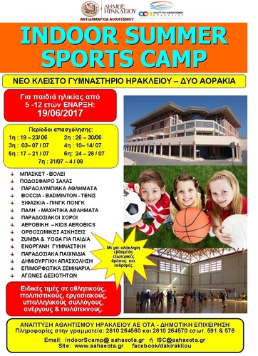 Στην διοργάνωση του 2ου  Indoor Summer Camp, προχωράει η Ανάπτυξη Αθλητισμού Ηρακλείου (A.A.H. OTA),  στις εγκαταστάσεις του Νέου Κλειστού Γυμναστηρίου στα Δύο Αοράκια.
