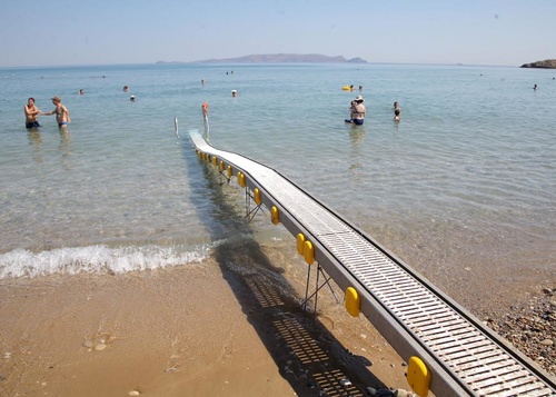 Το σύστημα πρόσβασης στην θάλασσα για ΑμεΑ πληροί τις απαραίτητες προδιαγραφές για την ασφάλεια τόσο των χρηστών όσο και των συνοδών τους ενώ παράλληλα καταλαμβάνει τον μικρότερο δυνατό χώρο, ώστε να μην δυσχεραίνει την διέλευση των υπόλοιπων επισκεπτών. Η προμήθεια και η εγκατάσταση του συστήματος χρηματοδοτήθηκε με ίδιους πόρους του Δήμου Ηρακλείου. Για να φτάσουν τα ΑμεΑ στην συσκευή έχει κατασκευαστεί διάδρομος, ενώ έχουν προβλεφθεί θέσεις στάθμευσης και αποδυτήρια.