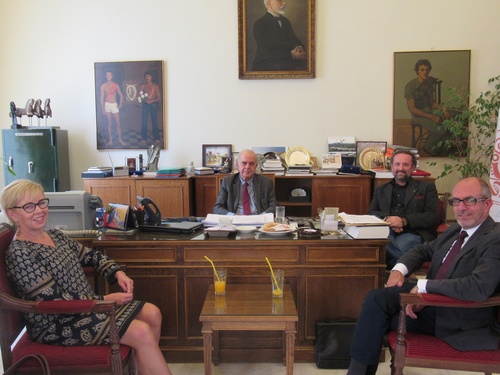Η συνάντηση πραγματοποιήθηκε στο πλαίσιο  της διαδικασίας πιστοποίησης του Ευρωπαϊκού Σχολείου Ηρακλείου – πρόκειται για μία διαδικασία που γίνεται ανά 2ετία- και συζητήθηκαν οι διαπιστώσεις της τριμελούς επιτροπής ενώ εδηλώθη η υποστήριξη της Δημοτικής Αρχής όχι μόνο για τη λειτουργία της σχολικής μονάδας αλλά και για τη λειτουργία του ENISA στο Ηράκλειο.