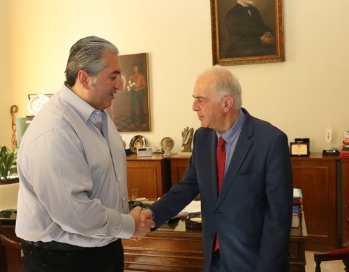 Τον νέο μεγαλομέτοχο και πρόεδρο του ΟΦΗ Μιχάλη Μπούση, υποδέχτηκε το πρωί της Παρασκευής 19 Οκτωβρίου, στο γραφείο του στη Λότζια, ο Δήμαρχος Ηρακλείου Βασίλης Λαμπρινός.