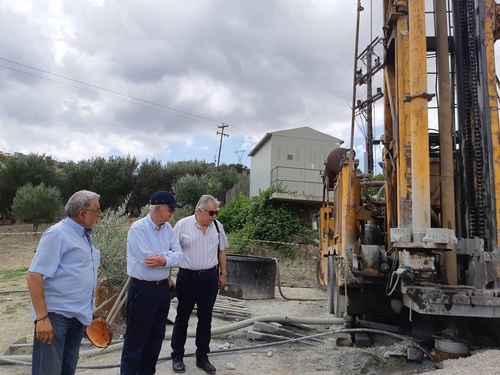 Στο υδρευτικό δίκτυο του Ηρακλείου θα πέσει μέσα στις προσεχείς εβδομάδες το νερό που έχει ήδη βρεθεί στις δυο νέες γεωτρήσεις των Δαφνών. Το πρωί του Σαββάτου 17 Ιουνίου, ο Δήμαρχος Ηρακλείου Βασίλης Λαμπρινός, συνοδευόμενος από τον Αντιδήμαρχο Οικονομικών Γιώργο Καραντινό, πραγματοποίησε αυτοψία στο σημείο των εργασιών και ενημερώθηκε από τον υπεύθυνο των γεωτρήσεων, στέλεχος της ΔΕΥΑΗ και γεωλόγο Παναγιώτη Σοφίου για την πορεία τους.